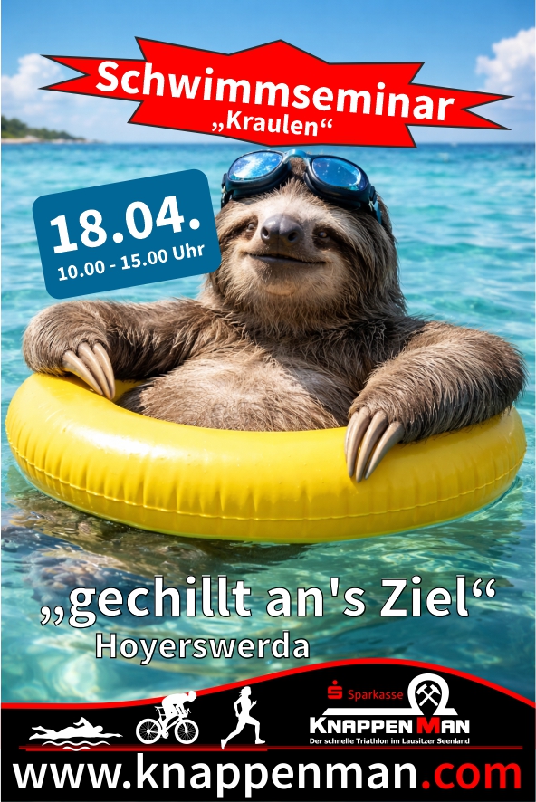 Beim 1. KnappenMan-Schwimmseminar, am 18.04.2026 in Hoyerswerda, lernt ihr in Theorie & Praxis die Grundlagen für das sportliche Schwimmen.